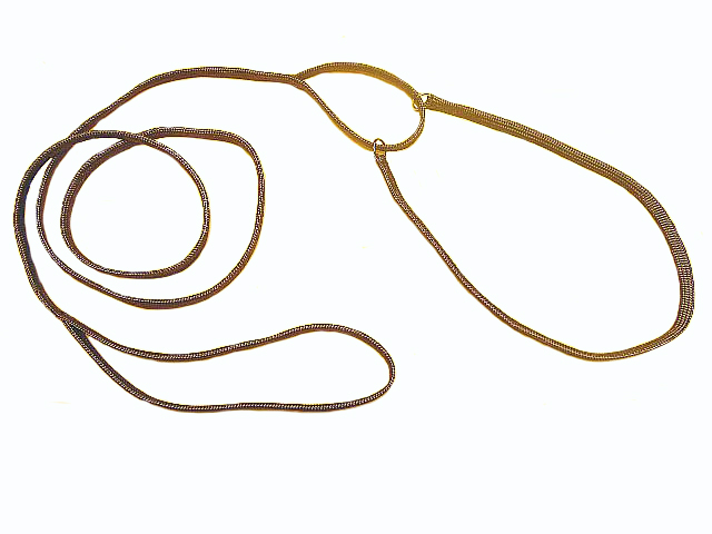 Die Showleine 2 ist 120 cm lang incl. Halsung und 20 cm Handschlaufe. Sie wird sehr gerne benutzt, da sie sehr klein, leicht und geschmeidig ist und man sie überall verstauen kann.